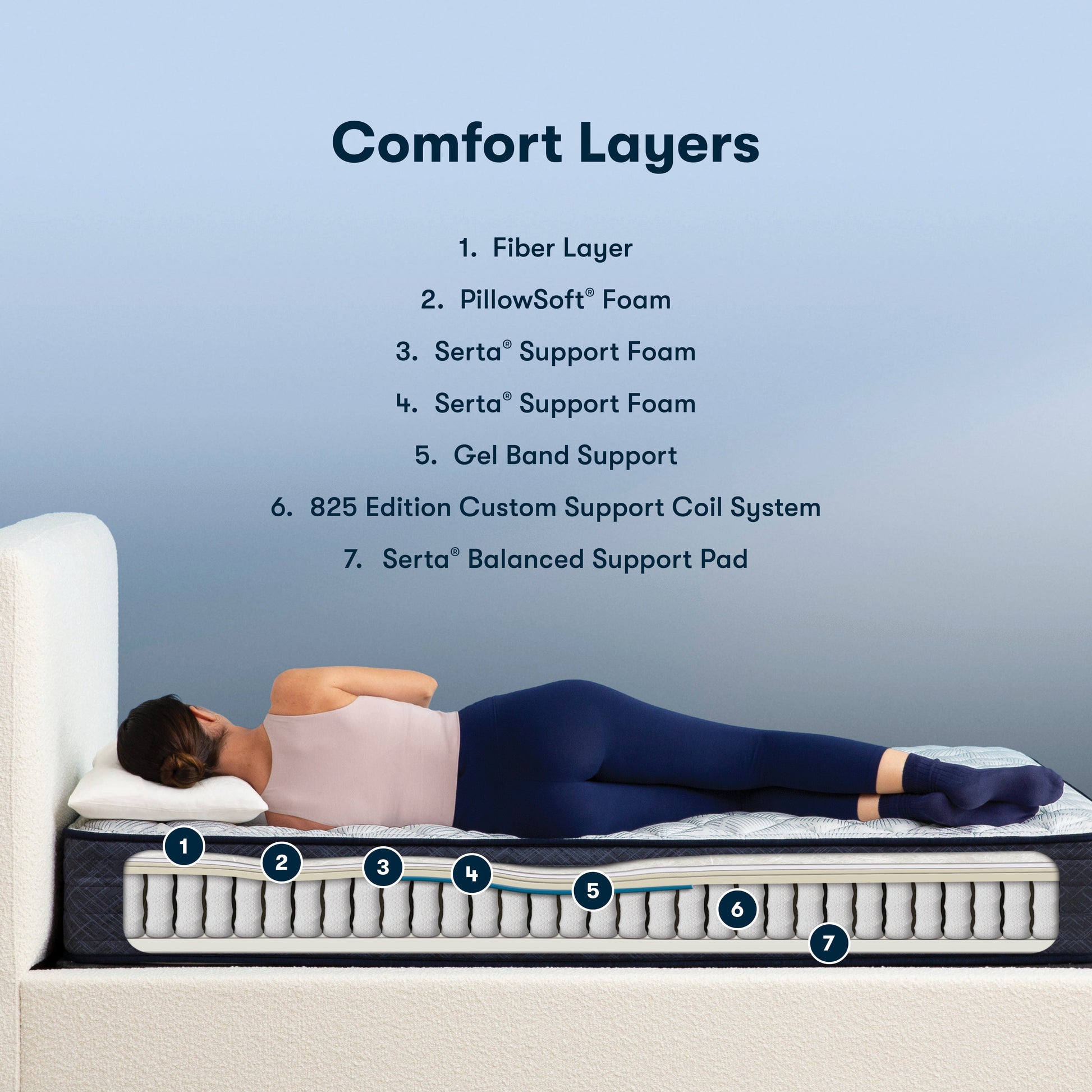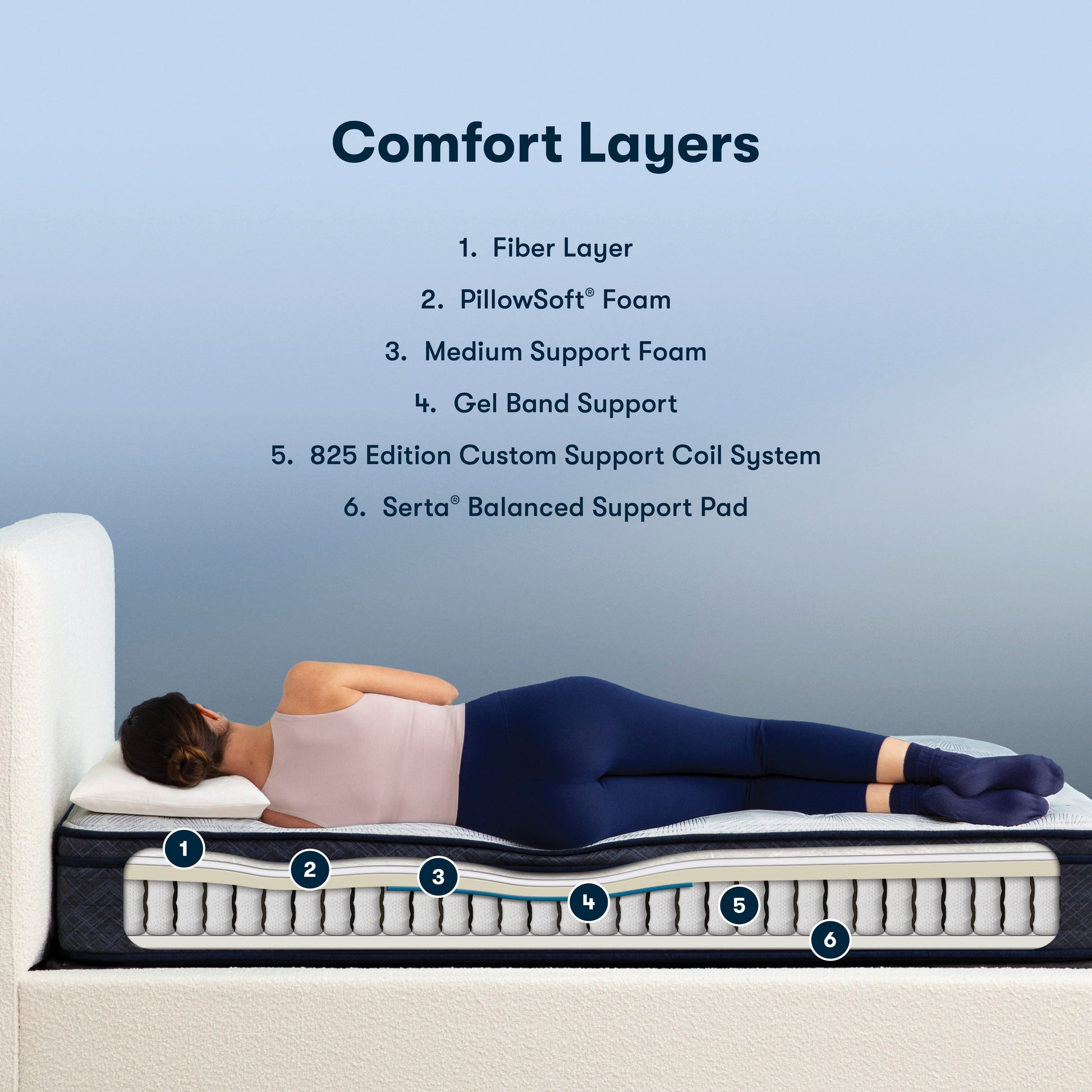 Featuring an 825-coil density system, this supportive mattress offers zoned comfort and pressure relief where you need it – with upgrades available with more cooling layers and support.